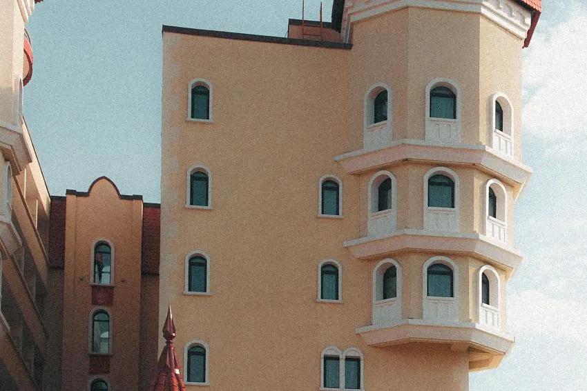 Архитектура «Богатыря» выгодно отличает отель от конкурентов в своем сегменте. Четырехзвездочный гостиничный комплекс моментально приковывает внимание – он стилизован под настоящий средневековый замок. Средневековая концепция декора соблюдается не только во внешней отделке и архитектуре в целом, оформление номеров и залов «Богатыря» также выдержано в благородном стиле средневекового замка. Тематическая отделка помещений воссоздает в отеле атмосферу тепла и уюта, присущую семейным резиденциям.